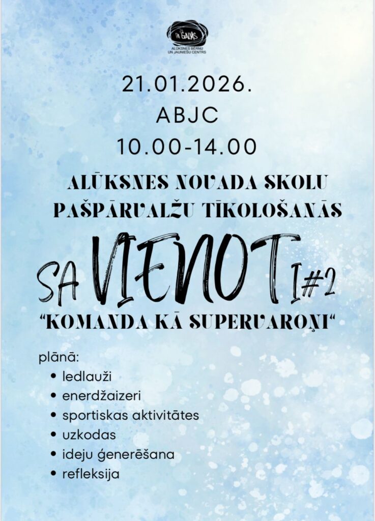 21.janvārī Alūksnes Bērnu un jauniešu centrā notiks skolu pašpārvalžu tīklošanās aktivitāte “saVIENOTi #2”